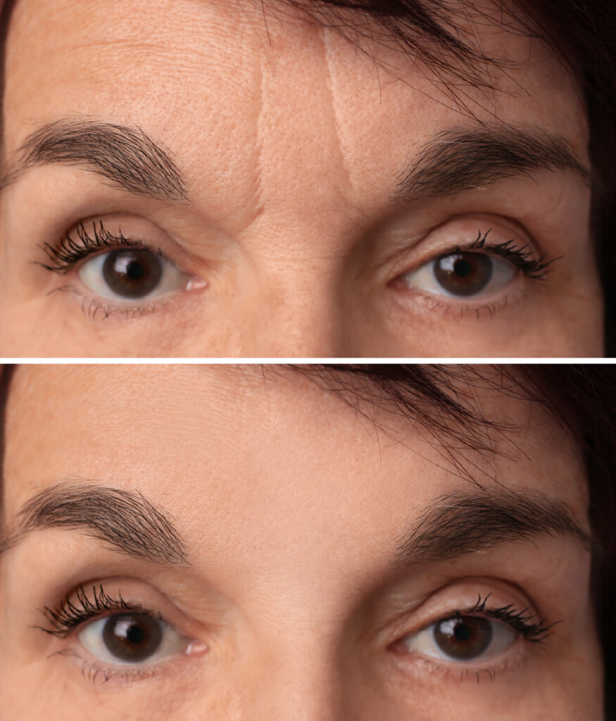 - Frown lines (glabellar lines between the eyebrows)